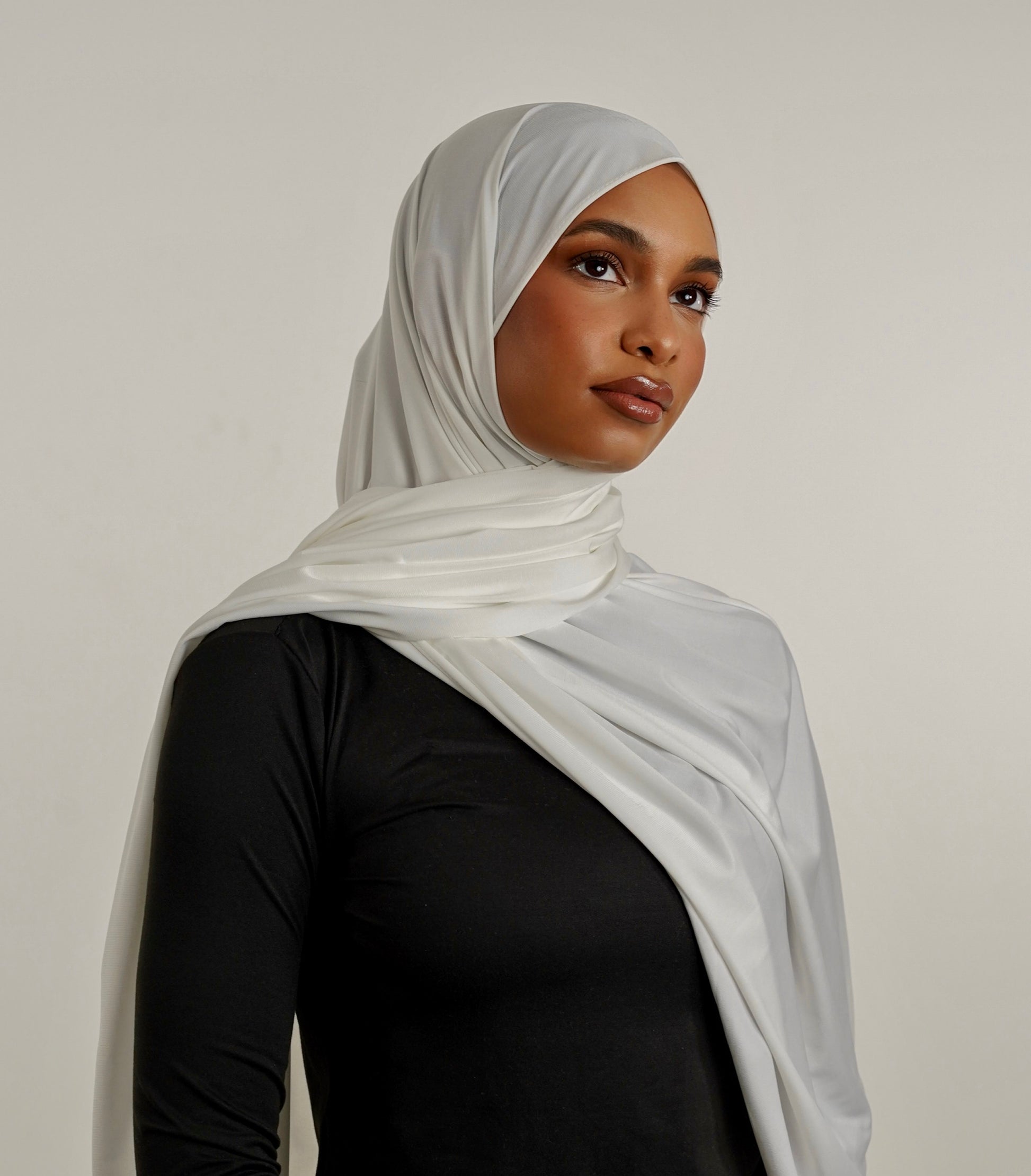 The Jersey fibres stop this scarf from slipping, whilst the subtle-sheen elevates the look and provides a premium look and feel